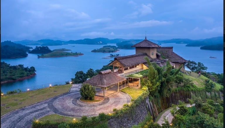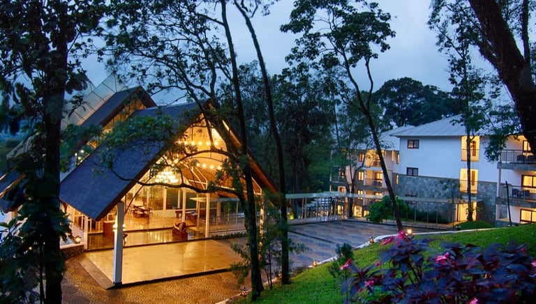 Hilltop island-style resorts with stunning water views, like Mountain Shadows in Wayanad