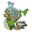 Group of riders crossing a rustic wooden bridge surrounded by dense forest