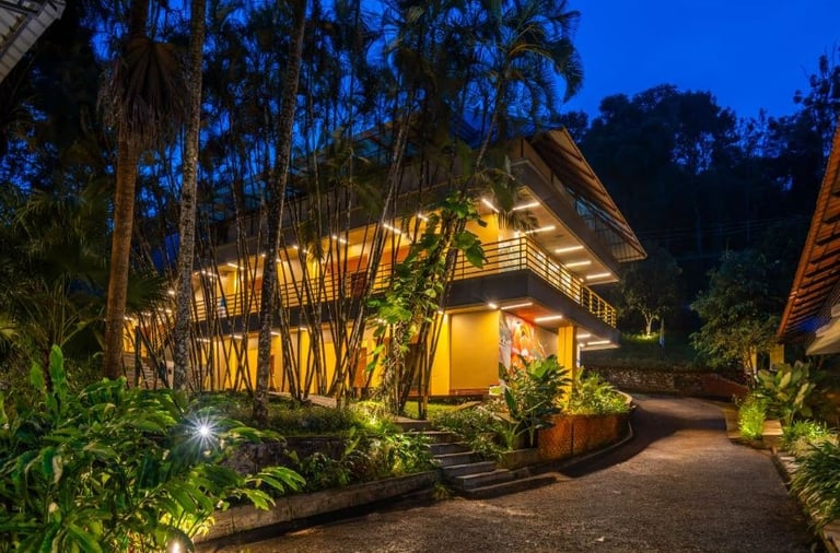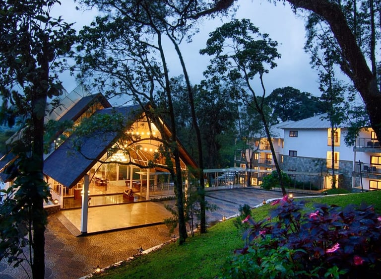 Hilltop island-style resorts with stunning water views, like Mountain Shadows in Wayanad